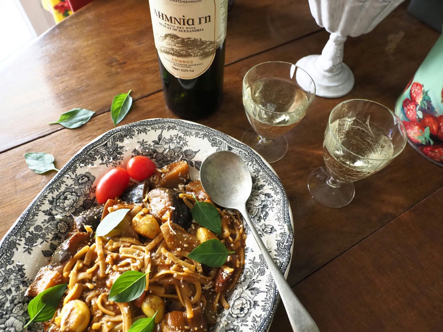 Βάλαμε στην κατσαρόλα αρκετό ελαιόλαδο και δώσαμε δύναμη στη φωτιά για να τσιγαριστούν και να ροδίσουν οι χοντρές φέτες δύο παλιών κρεμμυδιών, μαζί με πέντε-έξι, ολόκληρες, σκελίδες σκόρδου. Και μετά μπήκαν τα μαριναρισμένα κομμάτια της κλασικής μελιτζάνας, παρέα με αρκετά, ακέραια φυλλαράκια βασιλικού από τη γλάστρα και κάμποσα κλαδάκια μαϊντανού, χοντροκομμένα. Το κάθε κύμα των υλικών συνυπάρχει, συνδιαλέγεται και ενσωματώνεται στο φαγητό από δέκα έως και δεκαπέντε λεπτά, αναλόγως τα υγρά του. Μέχρι την ώρα της μιας πολύ ώριμης, αποφλοιωμένης, μεγάλης, ντομάτας, που θα δώσει μεγάλη άνεση υγρασίας στο φαγητό να μελώσει, μετά το δεύτερο, πιο συγκρατημένο, κύμα των μπαχαρικών και των μυριστικών, όπως τα δύο αποξηραμένα φύλλα δάφνης. Φανταστείτε το στα ξύλα, ανάμεσα στους μυρωδάτους καπνούς του φυσικού και του αυθεντικού. Αλλά και τώρα, στην αστική κουζίνα, το φαγητό άρχισε να μυρίζει…