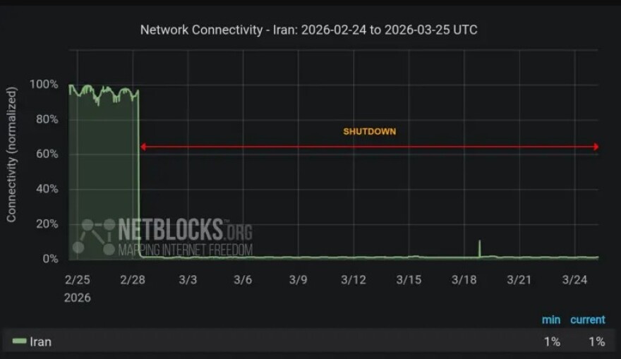 Το blackout στο διαδίκτυο που επέβαλε η ιρανική κυβέρνηση έχει εισέλθει στην 26η μέρα του και έχει ξεπεράσει τις 600 ώρες, σύμφωνα με την ομάδα παρακολούθησης του διαδικτύου NetBlocks.