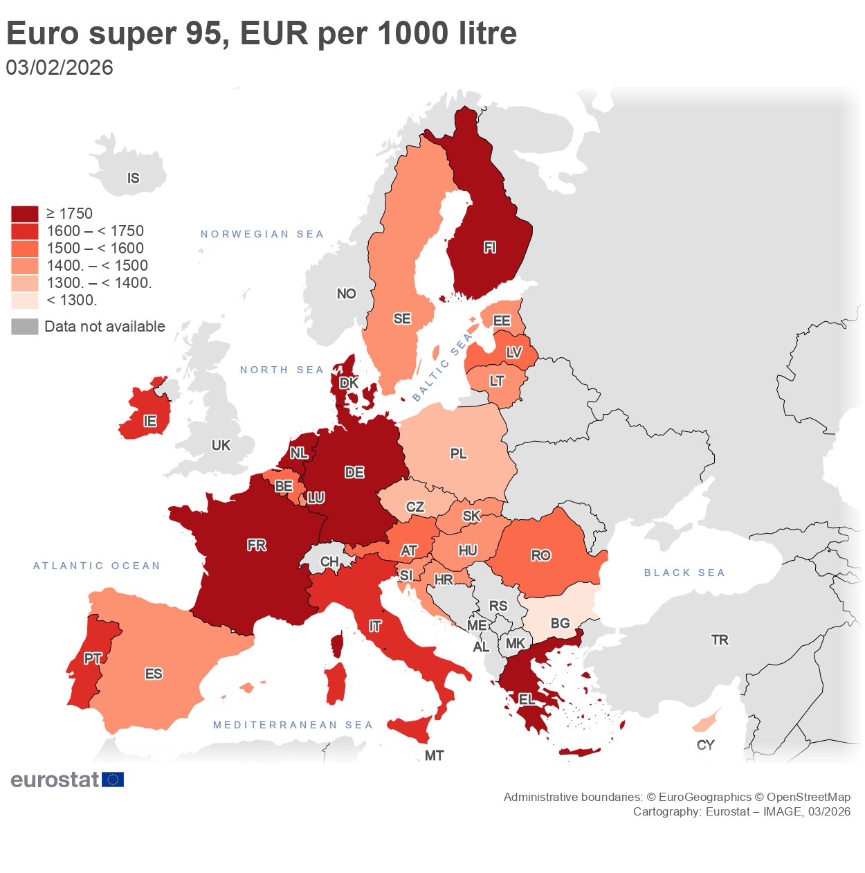 Σύμφωνα με τα τελευταία στοιχεία της Ευρωπαϊκής Ένωσης από τις 5 Μαρτίου, η Ελλάδα είναι ανάμεσα στις χώρες με την ακριβότερη βενζίνη στο μπλοκ, μαζί με τη Γαλλία, τη Γερμανία, την Ολλανδία, τη Δανία και τη Φινλανδία.