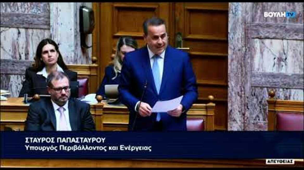 Ο πρώην πρωθυπουργός Αντώνης Σαμαράς και ο Υπουργός Περιβάλλοντος και Ενέργειας αντάλλαξαν απόψεις στην Ολομέλεια της Βουλής σχετικά με τις συμβάσεις υδρογονανθράκων και την εξωτερική πολιτική.