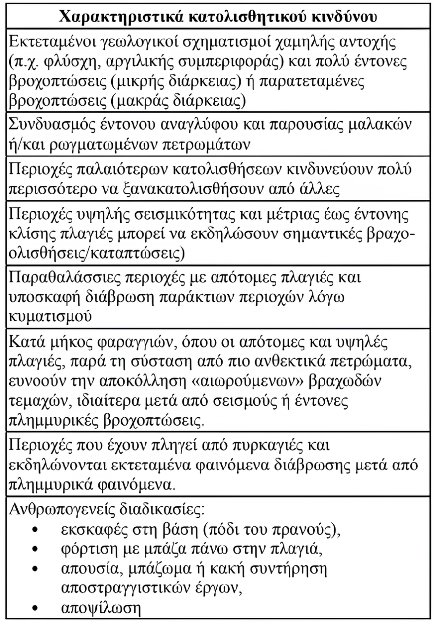 Σε αυτές τις περιπτώσεις, οι κατολισθήσεις δεν συνδέονται απαραίτητα με έντονες βροχοπτώσεις, αλλά με τη συνεχή αποσυμπίεση-αποσταθεροποίηση των πρανών. «Η ακτογραμμή υποσκάπτει συνεχώς» και, όταν υπάρχουν απότομες κλίσεις, μπορεί να εκδηλωθούν «είτε πτώσεις βράχων είτε και σημαντικές κατολισθήσεις».