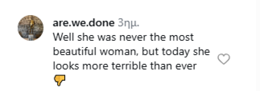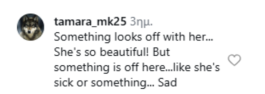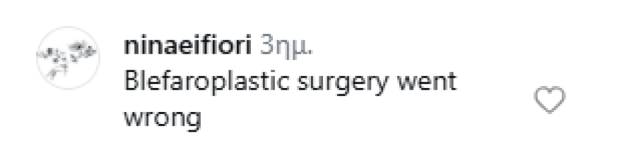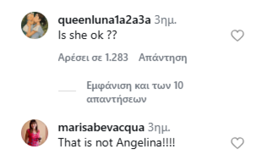 Κάτω από την ανάρτηση έγραφαν αναλυτικά: «Είναι καλά;», «Αυτή δεν είναι η Αντζελίνα», «Κρύβει το μισό της πρόσωπο», «Κάτι δεν πάει καλά... Είναι τόσο όμορφη, αλλά εδώ κάτι δεν πάει καλά, σαν να είναι άρρωστη. Στενάχωρο», «Βλεφαροπλαστική που απέτυχε», «Δεν ήταν ποτέ η πιο όμορφη γυναίκα, αλλά σήμερα είναι στα χειρότερά της».