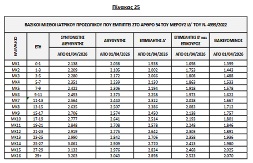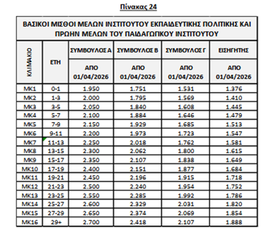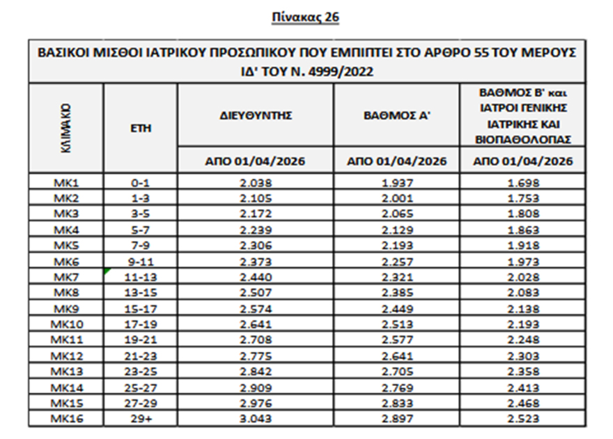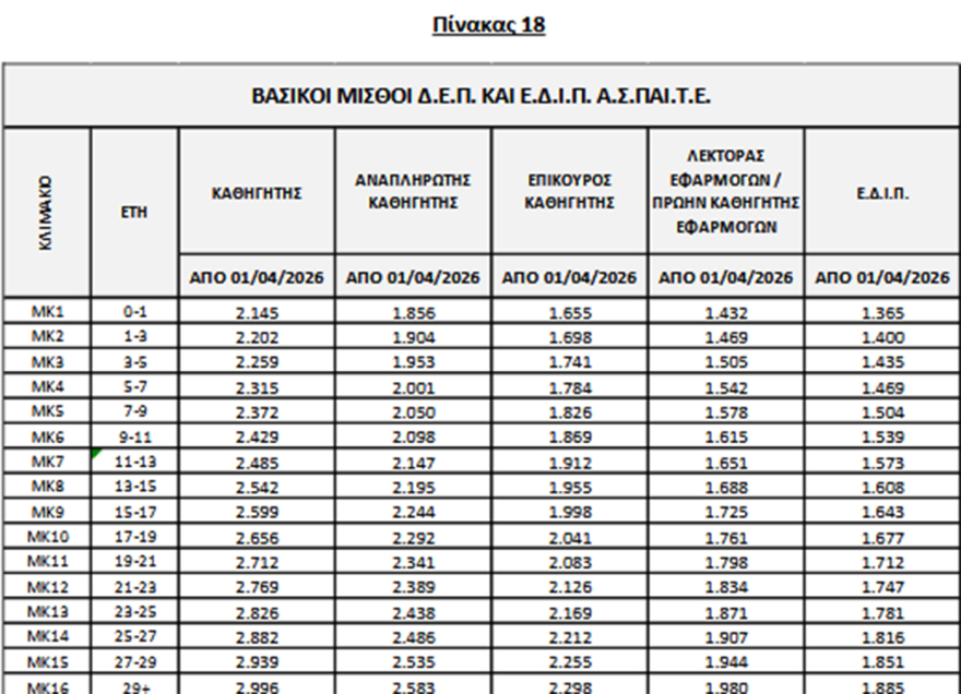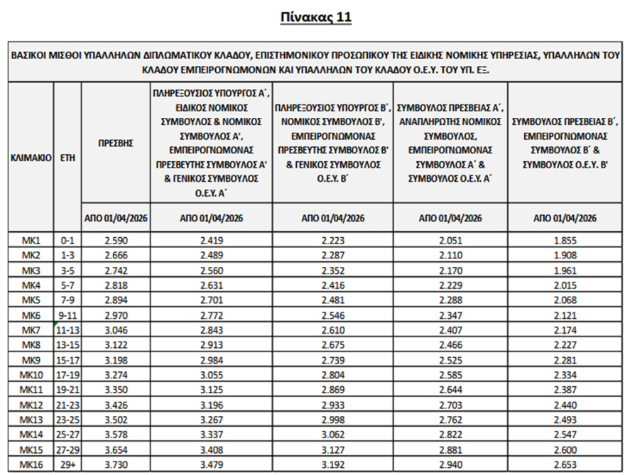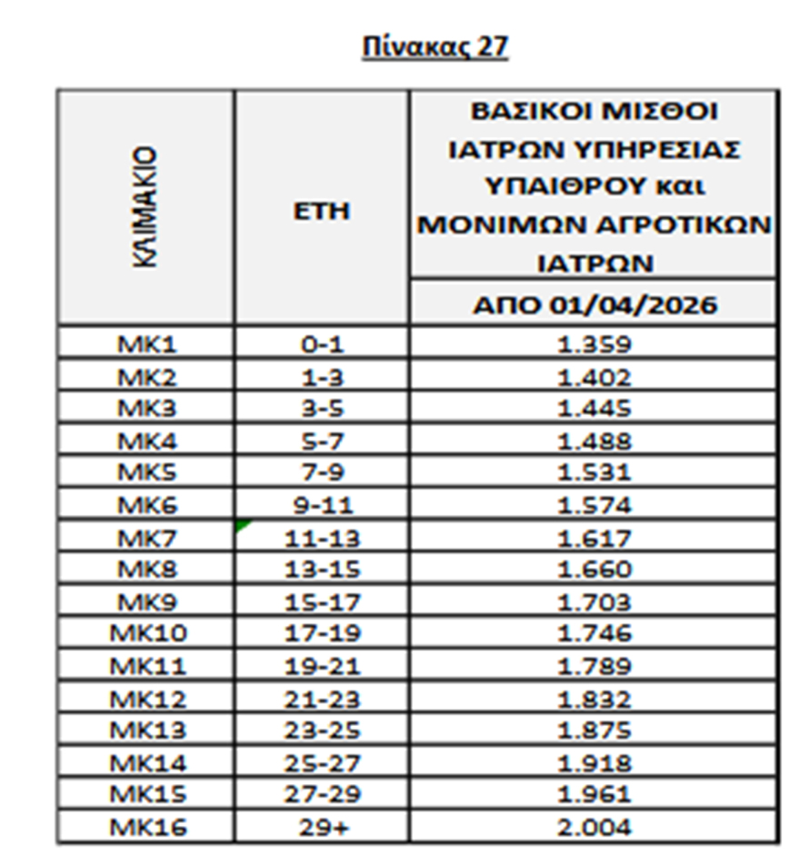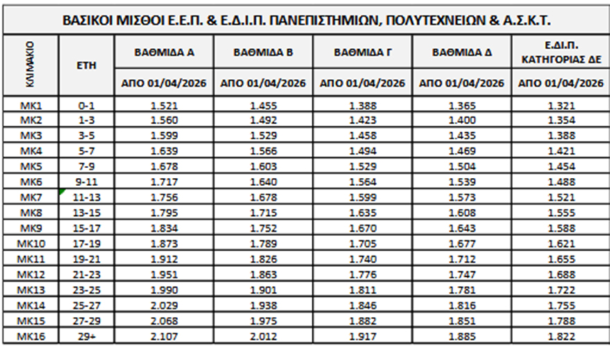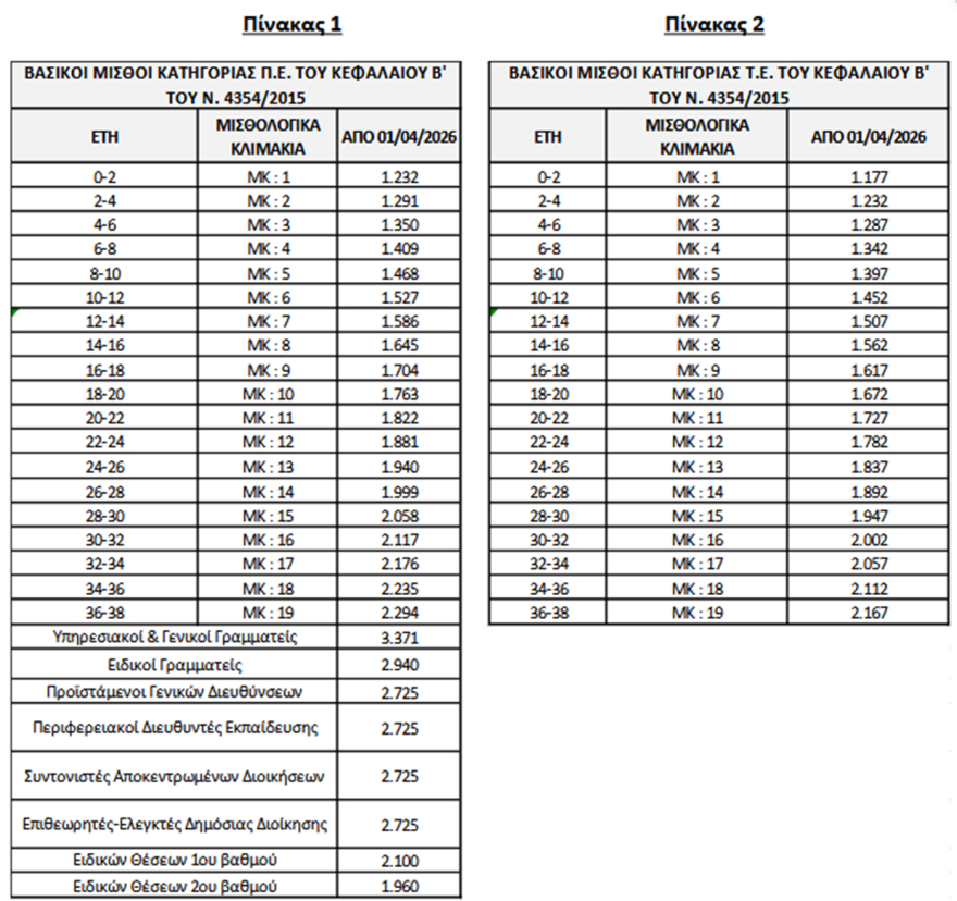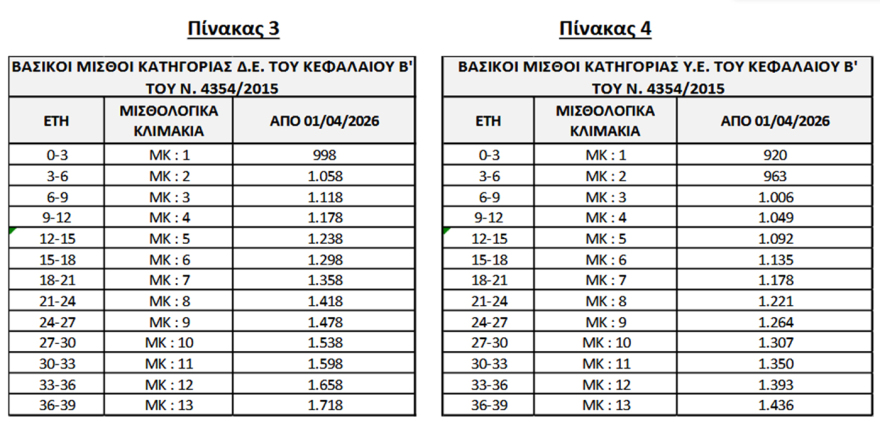 ΠΙΝΑΚΕΣ : ΟΙ ΝΕΟΙ ΜΙΣΘΟΙ ΣΤΟ ΔΗΜΟΣΙΟ ΑΠΟ 1ης ΑΠΡΙΛΙΟΥ 2026 ΚΑΙ ΜΕΤΑ