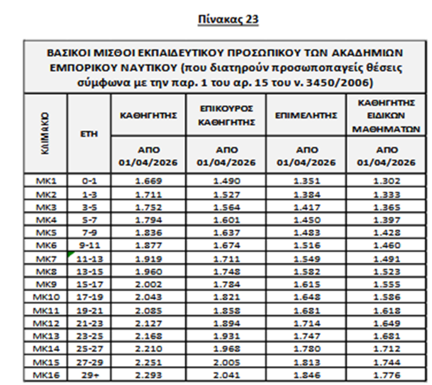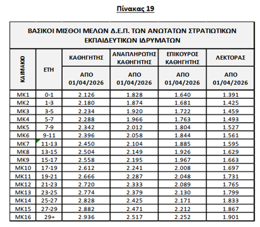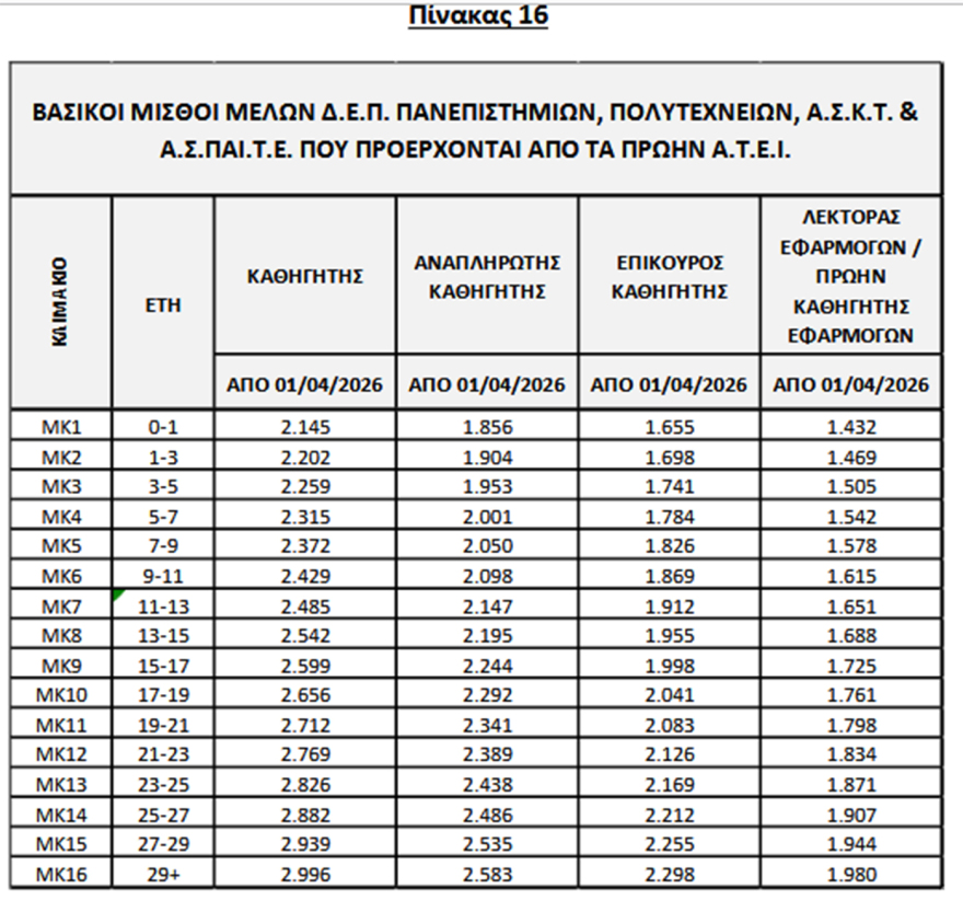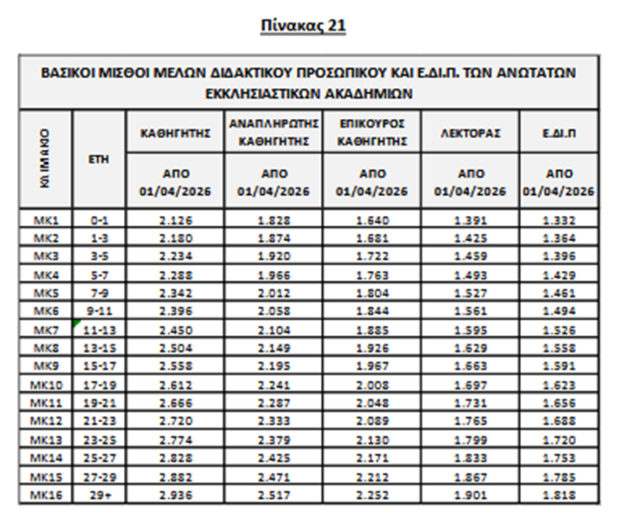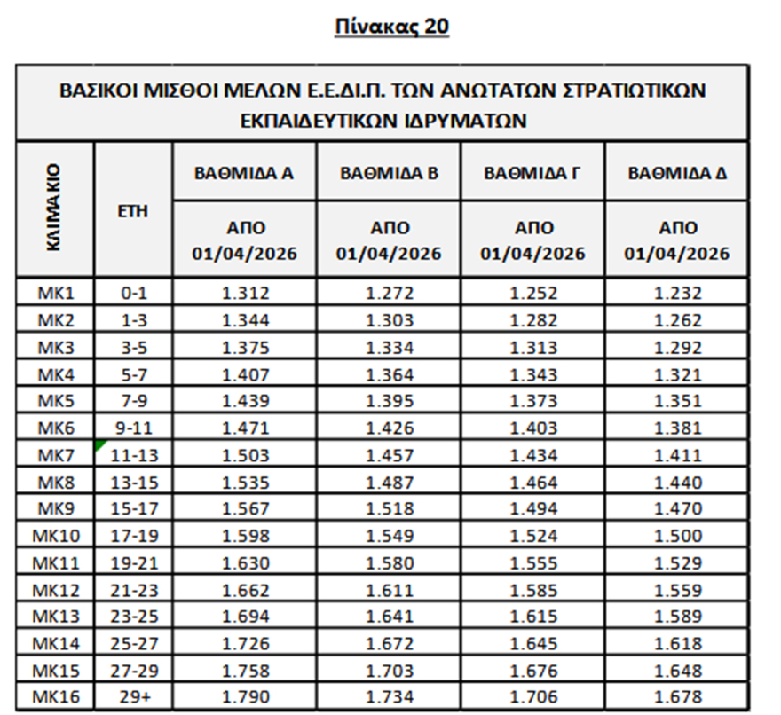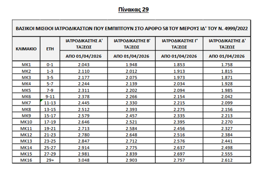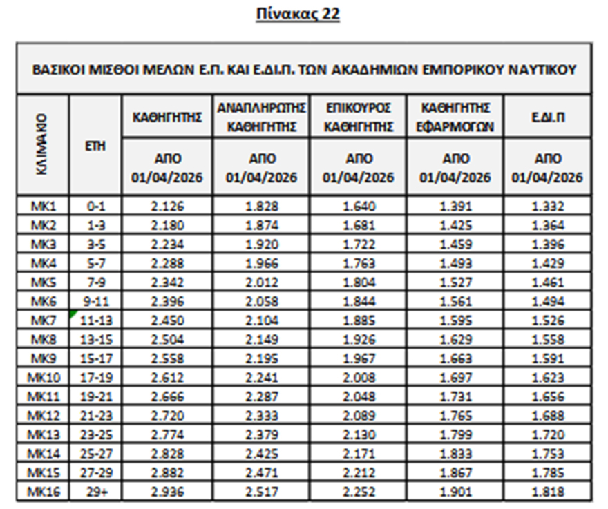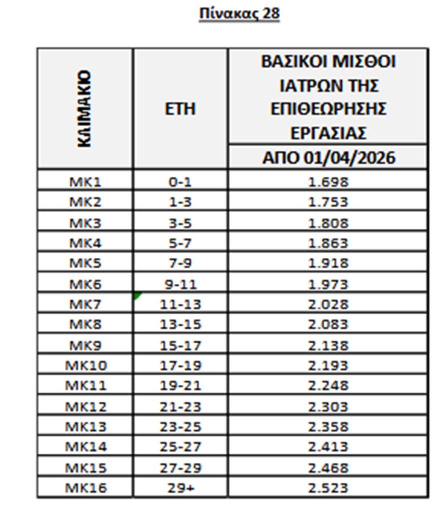 ΠΙΝΑΚΕΣ : ΟΙ ΝΕΟΙ ΜΙΣΘΟΙ ΣΤΟ ΔΗΜΟΣΙΟ ΑΠΟ 1ης ΑΠΡΙΛΙΟΥ 2026 ΚΑΙ ΜΕΤΑ