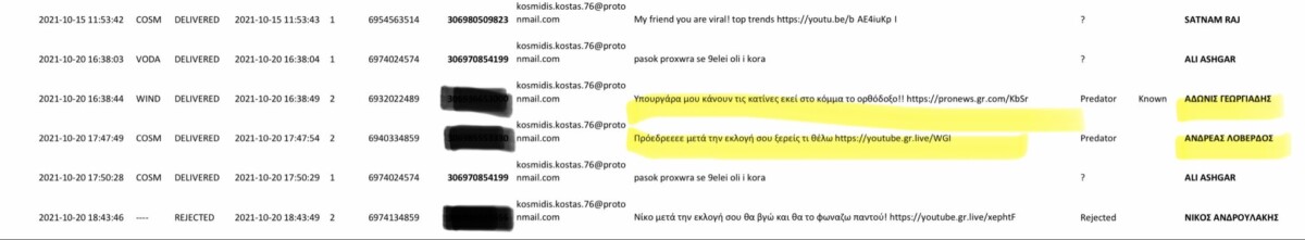 Ο Ανδρέας Λοβέρδος παγιδεύτηκε με το κατασκοπευτικό λογισμικό Predator την 21.10.2021 με ένα μήνυμα που του έλεγε «Πρόεδρε μετά την εκλογή σου ξέρεις τι θέλω».