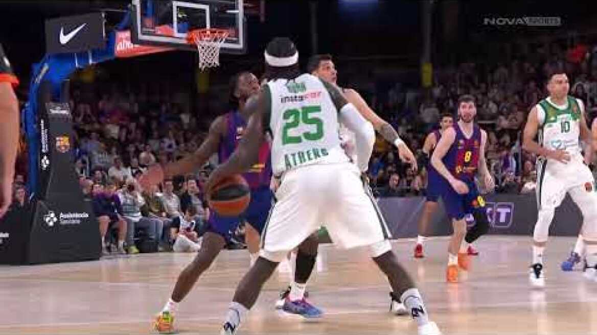 Με μία εμφάνιση ωδή στο επιθετικό μπάσκετ, ο Παναθηναϊκός διέσυρε την Μπαρτσελόνα στη Βαρκελώνη και σε συνδυασμό με το «δώρο» της Ντουμπάι στο Κάουνας, «πάτησε» εξάδα! Οι «πράσινοι» συνέτριψαν με 93-79 τους Καταλανούς, για την 36η αγωνιστική της Euroleague, βελτιώνοντας το ρεκόρ τους σε 21-15, επιστρέφοντας στα θετικά αποτελέσματα μετά την ήττα από τη Χαποέλ Τελ Αβίβ. Στον αντίποδα, η Μπαρτσελόνα υποχώρησε στο 20-16, χάνοντας έδαφος στη μάχη της εξάδας και της απευθείας πρόκρισης στα πλέι οφ.