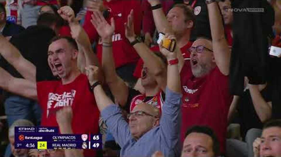 Ηχηρό μήνυμα ενόψει της συνέχειας της Euroleague έστειλε ο Ολυμπιακός με μία «μαγική» εμφάνιση και μία επιβλητική νίκη, δέκατη διαδοχική στο ΣΕΦ (102-88) απέναντι στην πολυνίκη της διοργάνωσης, με 11 τίτλους, Ρεάλ Μαδρίτης, για την 36η αγωνιστική. Η ομάδα του Πειραιά εξασφάλισε το πλεονέκτημα έδρας στα πλέι οφ και την Πέμπτη (9/4) θα τα δώσει όλα για μία ακόμη νίκη για να εξασφαλίσει και την πρώτη θέση στη Σόφια απέναντι στη Χάποελ Τελ Αβίβ.